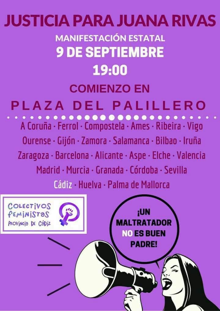 Tras la convocatoria estatal en más de 20 ciudades del estado español en apoyo a Juana Rivas, se han realizado distintas manifestaciones, en Cádiz, y convocada por los colectivos feministas de la provincia de Cádiz , nos dimos cíta en la Plaza de El Palillero.