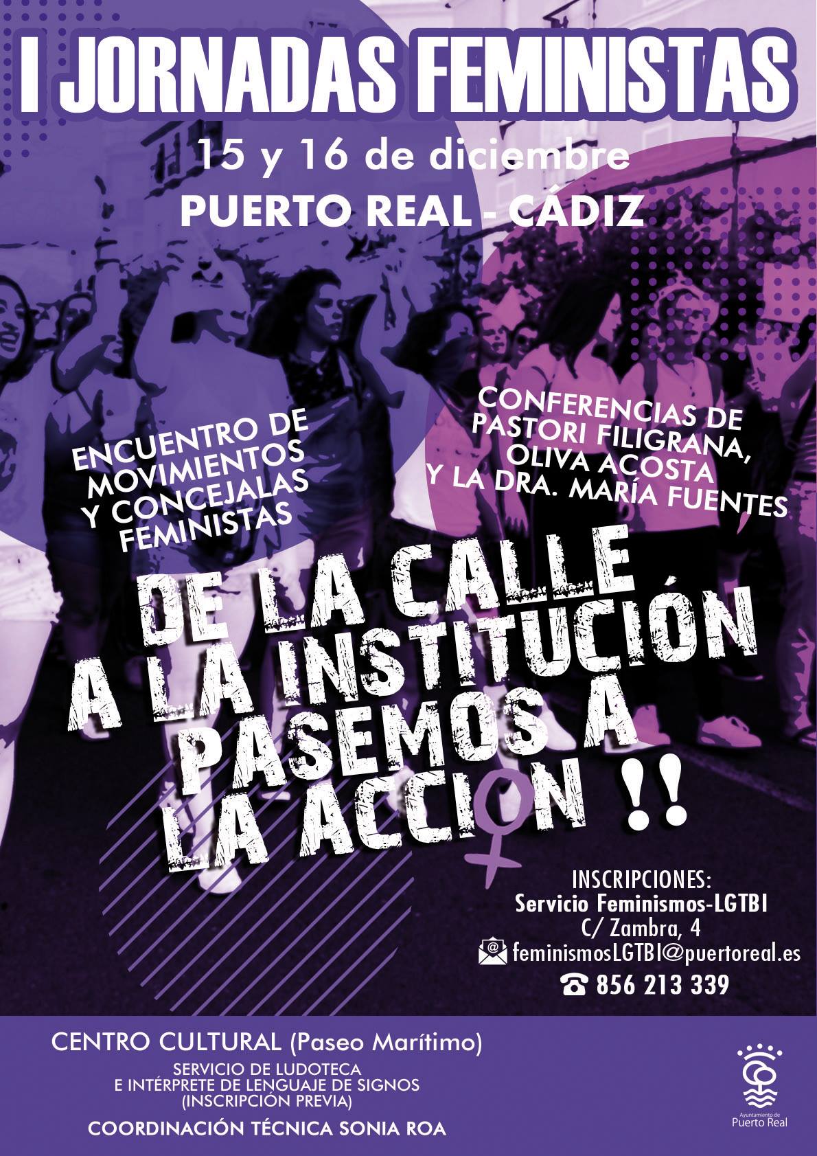 El pasado 15 y 16 de diciembre participamos junto a más colectivos en la mesa redonda «Experiencias de compañeras que participan en movimientos feministas» de las I Jornadas Feministas «De la Calle a la Institución, ¡pasemos a la acción!» organizadas por el Ayuntamiento de Puerto Real.