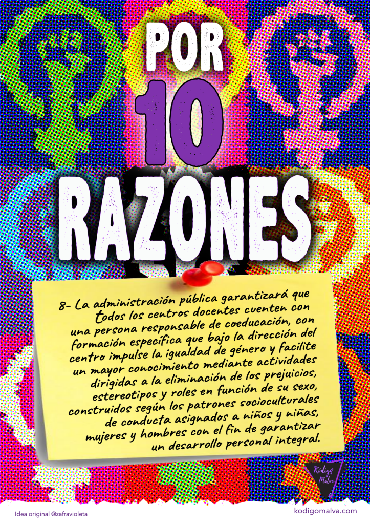 Porque la administración debe impulsar la verdadera figura de la coeducación a través de una persona responsable en los centros educativos para promover la igualdad y la eliminación de los prejuicios, estereotipos y roles en función de su sexo.