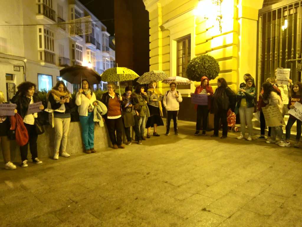 Hoy nos hemos dado cita en la puerta del Ayuntamiento de Chiclana unas 5o personas para mostrar nuestro rechazo ante la sentencia de la Audiencia de Barcelona por el caso de la violación grupal de una adolescente en Manresa y en la que leímos el siguiente manifiesto: