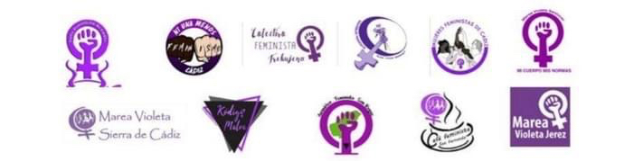 Café Feminista de Cádiz , Colectivo Feminista Trebujena, Asamblea Feminista Las Tres Rosas (El Puerto) , Marea Violeta Sierra de Cádiz , Asamblea Ecofeminista de San Roque , Ni Una Menos Cádiz , Café Feminista de San Fernando , Kódigo Malva (Chiclana) , Marea Violeta Jerez , Marea Violeta Sanlúcar, Mujeres Feministas de Cádiz.