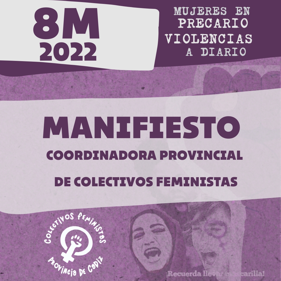 Desde la Coordinadora de Colectivos Feministas de la Provincia de Cádiz, volvemos a salir a las calles de nuestra provincia otro 8 de marzo porque somos conscientes que las luchas de las mujeres, de todas las mujeres, solo confluyen en las calles, ahí es donde somos realmente inclusivas.
