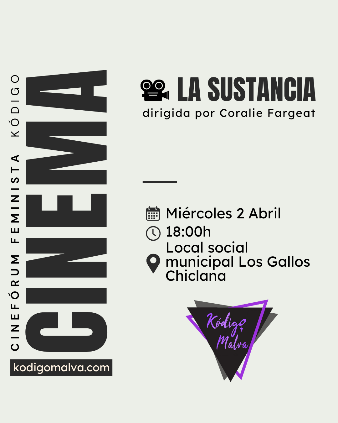 En la sesión del mes de abril de nuestro cinefórum feminista Kódigo CineMa vimos y debatimos sobre la película “la sustancia”. Antes de proyectarla avisamos; no es una película apta para todas las sensibilidades.