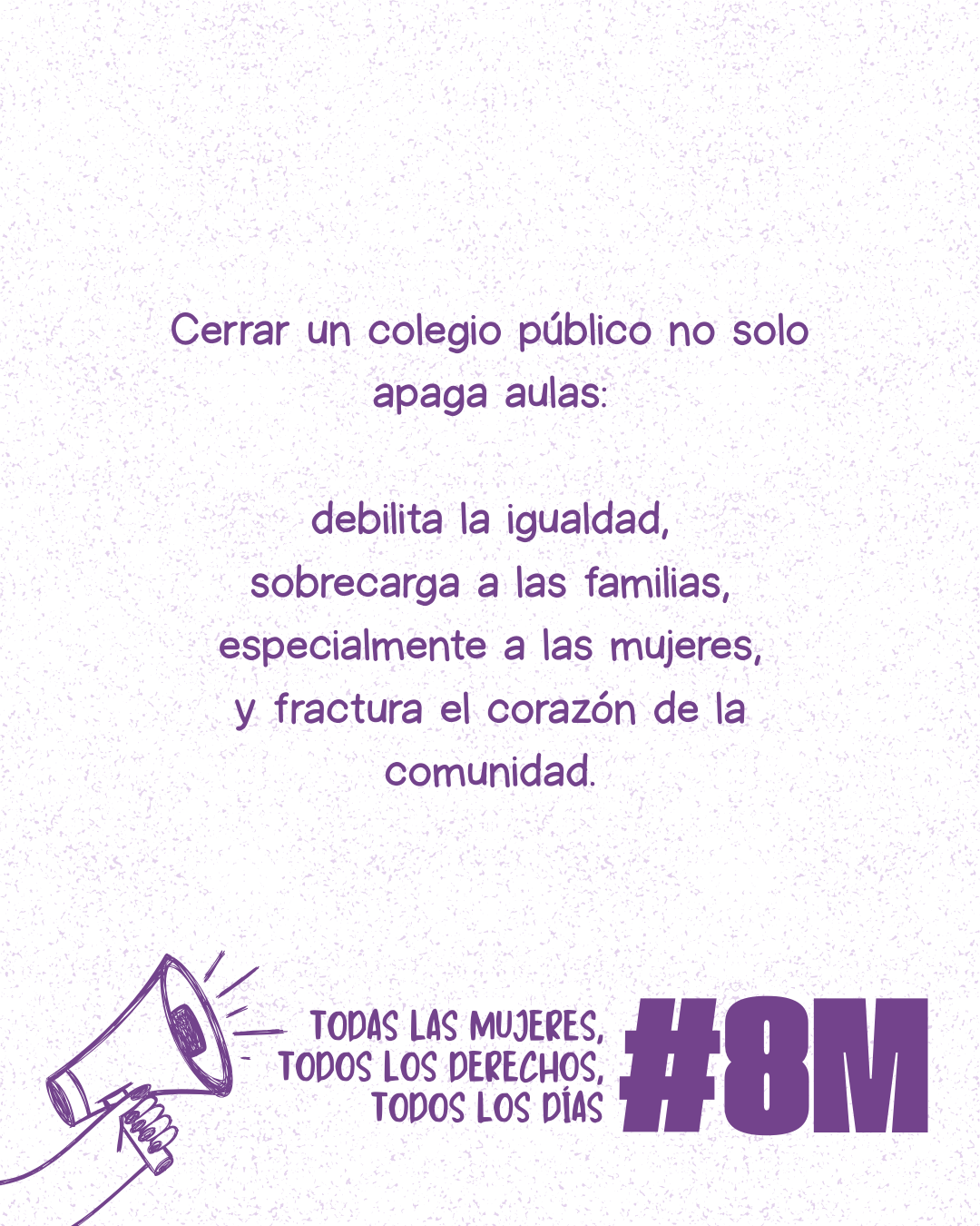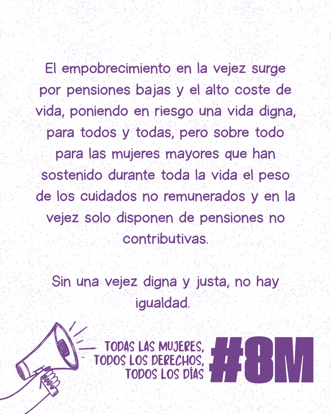 No entendemos el 8M como una fecha simbólica aislada, sino como una oportunidad para generar conciencia crítica y fortalecer el compromiso colectivo con la igualdad real. En un contexto marcado por el aumento de la polarización social, la normalización de la desinformación, el deterioro de los servicios públicos esenciales y el incremento de la precariedad con claro impacto de género, consideramos necesario promover espacios de reflexión compartida.