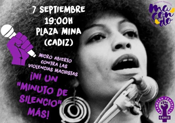 El pasado 7 de septiembre, La Asamblea Feminista de Cádiz y MACONDO - Espacio Creativo y Feminista organizaron en La Plaza Mina de Cádiz el acto reivindicativo "Ni un minuto de Silencio Más. Micro abierto contra las violencias Machistas". Con micrófono abierto, mujeres y hombres gritamos contra ese machismo, a través de una frase, un... Leer más →